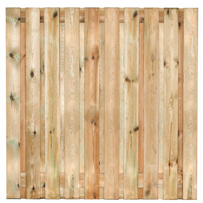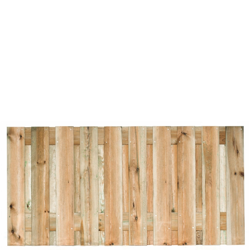Deze tuinschermen zijn standaard 180 centimeter breed en 180 centimeter hoog. Het is opgesteld uit verschillende planken van 16 millimeter dik en 140 millimeter breed.
