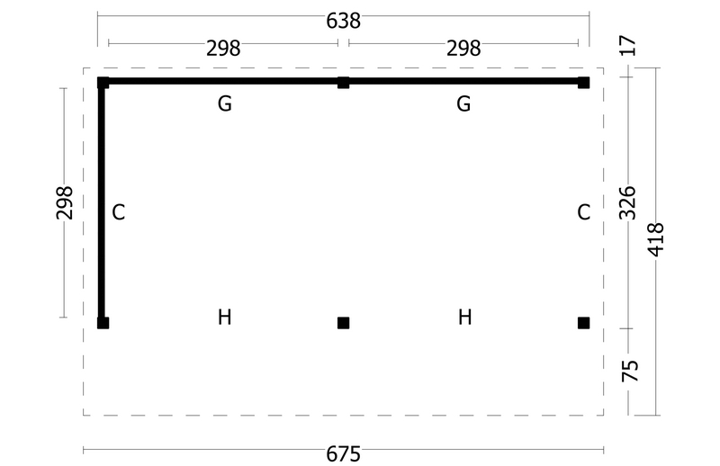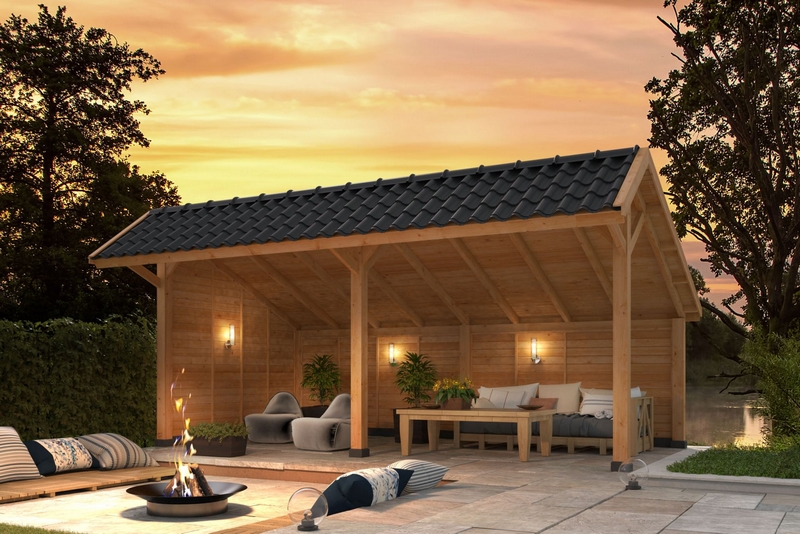 Dit buitenverblijf is aan de achterkant helemaal dicht. En aan 1 zijde is deze Lariks Douglas houten kapschuur ook helemaal afgesloten, zo zit u heerlijk beschut. De wanden voor de achter- en zijwand zijn onbehandeld en opgebouwd met Lariks Douglas potdeksel planken van 19.5 cm breed en 2.2 cm dik. Het regelwerk voor de opbouw van de wanden worden standaard meegeleverd.