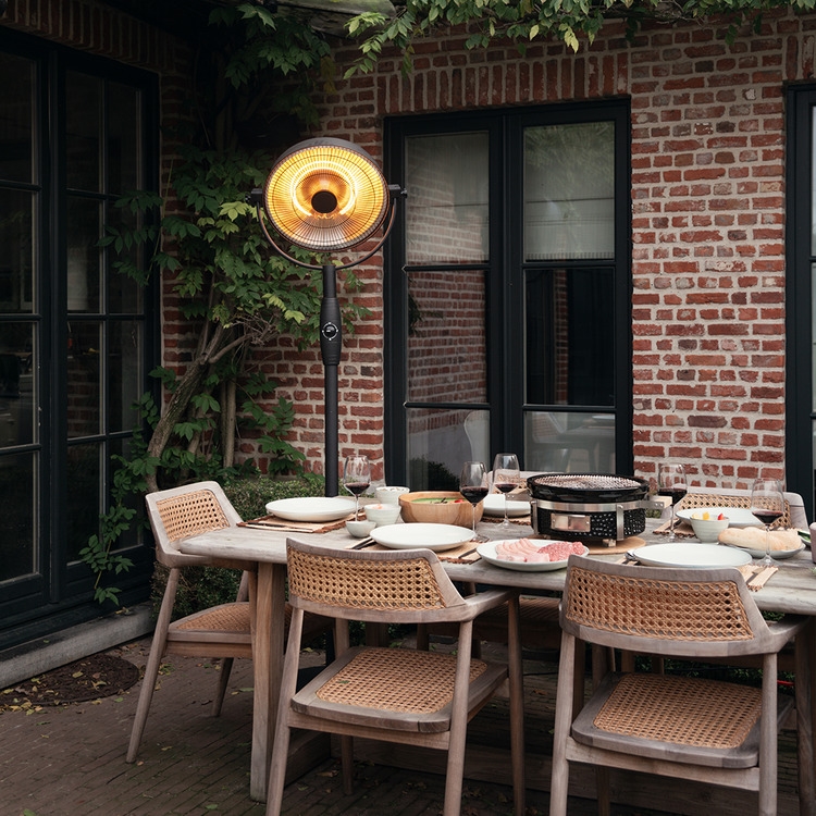 De zwarte afwerking geeft de terrasverwarmer een tijdloos en modern karakter dat moeiteloos in elke omgeving past.