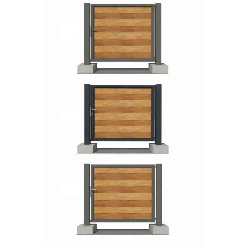 Voor de bekleding kunnen houten planken gebruikt worden met een dikte tussen 1,5 cm en 4 cm. De grondspeling bedraagt circa 8 cm, waardoor de poort net boven de grond zweeft.