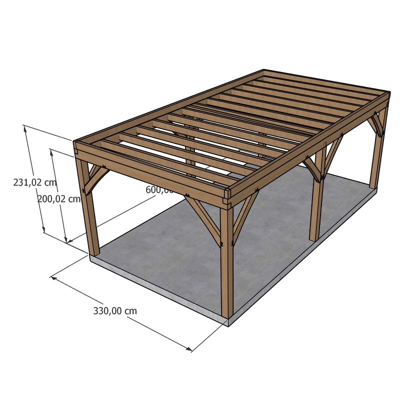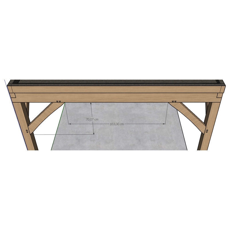 Voor een lange levensduur is een stevige basis belangrijk. Plaats de constructie op beton of stabilisé en gebruik betonpoeren of sokkels om direct grondcontact te vermijden.