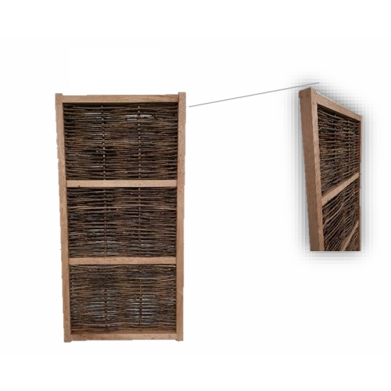 Tussen dit kader zitten natuurlijke wilgentakken gevlochten.