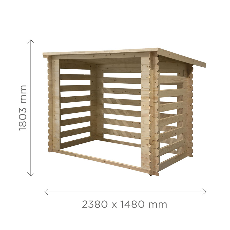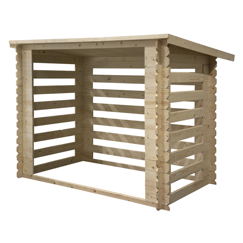 Bovenaan is de houtberging voorzien van een plat dak dat
