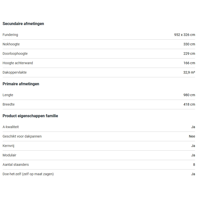 Afmetingen: 989 x 418 x 330 cm