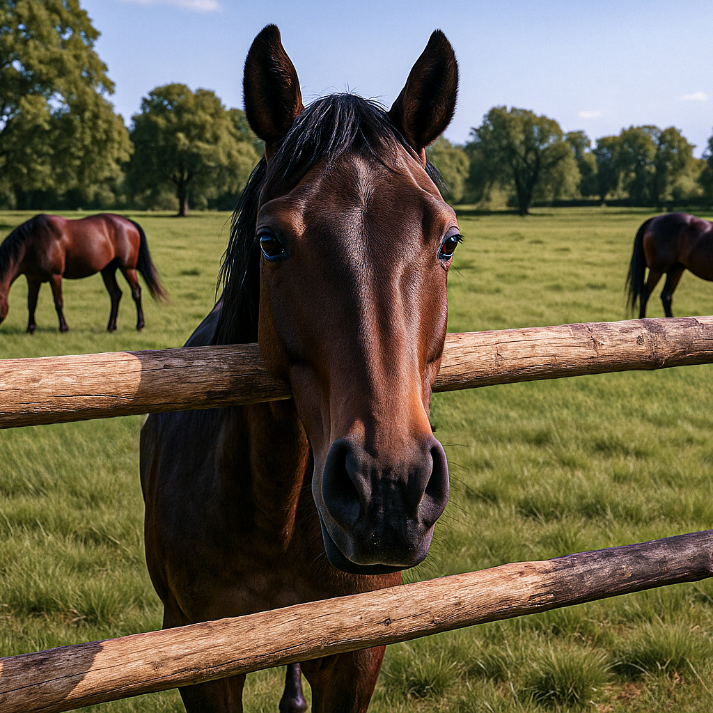 Deze kastanje ‘basic’ paardenomheining bestaan uit halfronde