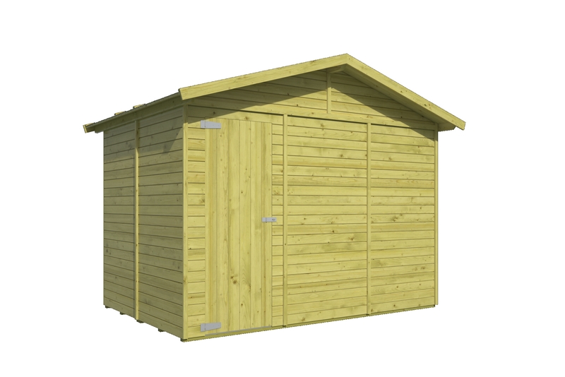 Het model wordt geleverd als bouwpakket met voorgemonteerde panelen, wat de montage snel en eenvoudig maakt – ideaal voor wie een duurzame maar gebruiksvriendelijke oplossing zoekt. Plaats de kiosk op een vlakke, stabiele ondergrond, bij voorkeur een verhard oppervlak zoals tegels of een betonplaat. Dankzij de geïmpregneerde afwerking kan het hout direct buiten geplaatst worden.