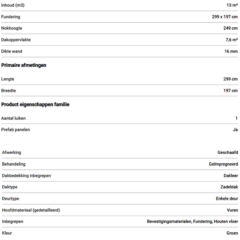 Inclusief: Bevestigingsmaterialen, Fundering, Houten vloer, dakleer