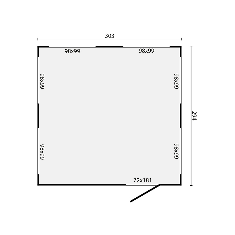 Buitenmaat: 300 × 300 cm