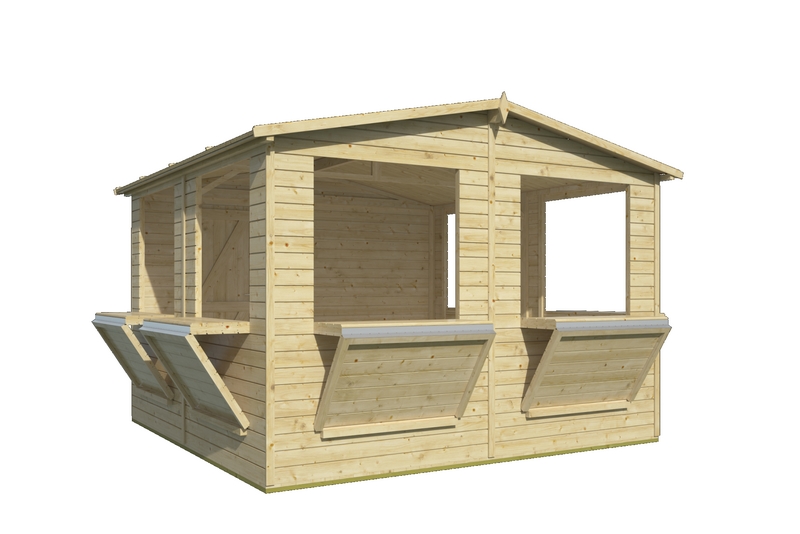 De Kiosk Moose is een charmante, compacte houten kiosk die perfect dienstdoet als tuinhuisje, verkooppunt, infostand of tuinbar. Met zijn natuurlijke uitstraling en praktische opbouw is dit model een echte blikvanger in elke tuin of op elk evenemententerrein.