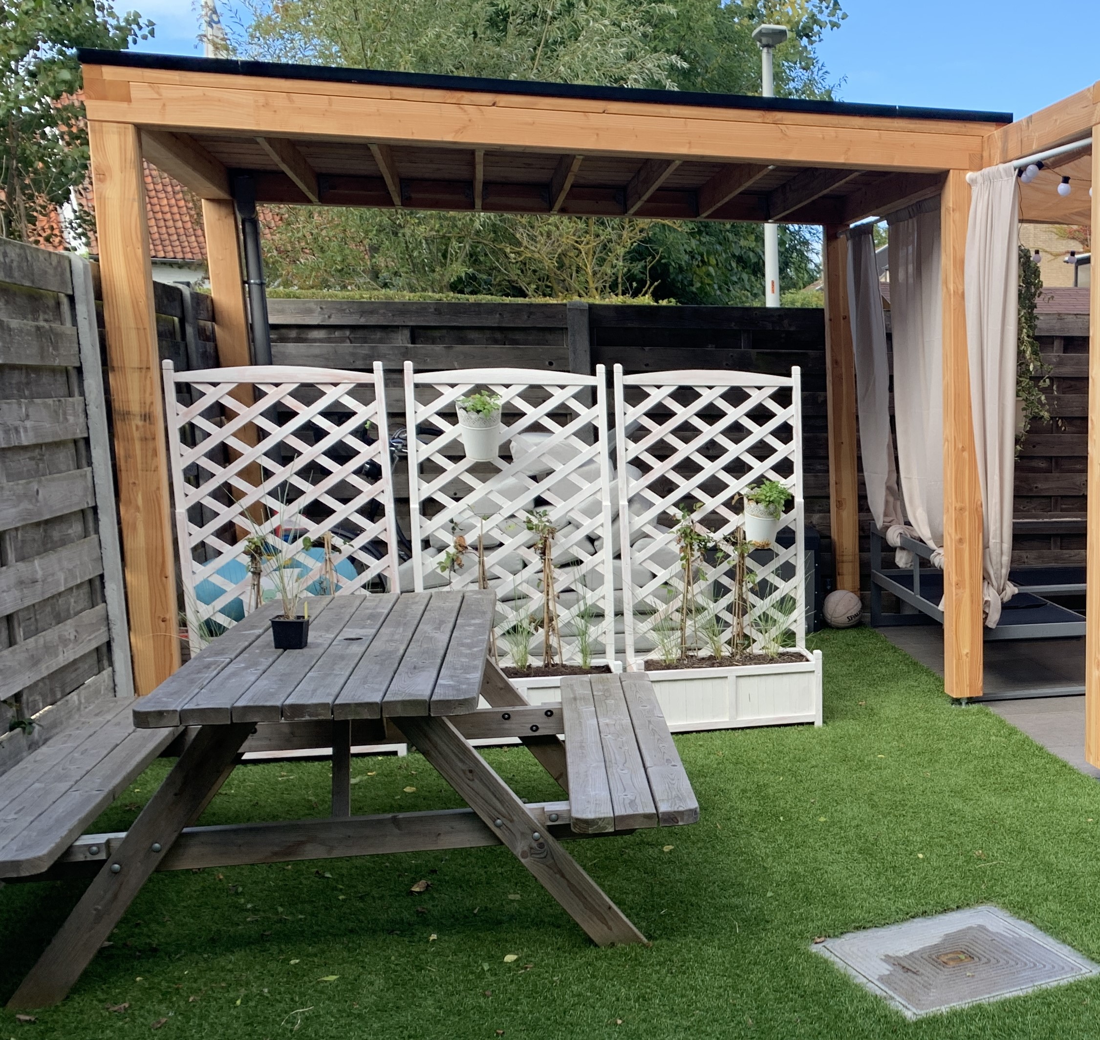 Na de plaatsing van je lariks pergola kan je het geheel volledig