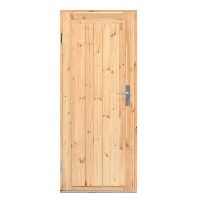 Deze deur is bekleed met vurenhout aan beide zijden met isolatie ertussen. Dit maakt zorgt dat ze de warmte goed tegenhouden en een constante temperatuur garanderen in de ruimte. Daarnaast krijg je ook een aluminium lekdorpel dat met rubber netjes is afgedicht. De deur zelf is volledig dicht, zonder glas, voor optimale privacy en veiligheid tegen inbrekers.