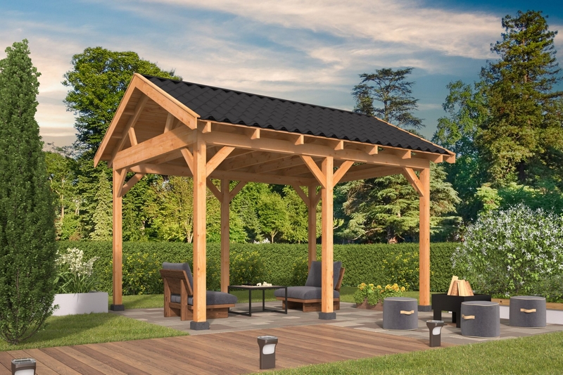 De tuinoverkapping met zadeldak Hamar is een modulair zelfbouw systeem waarbij je zelf kiest hoe jouw overkapping eruit zal zien.