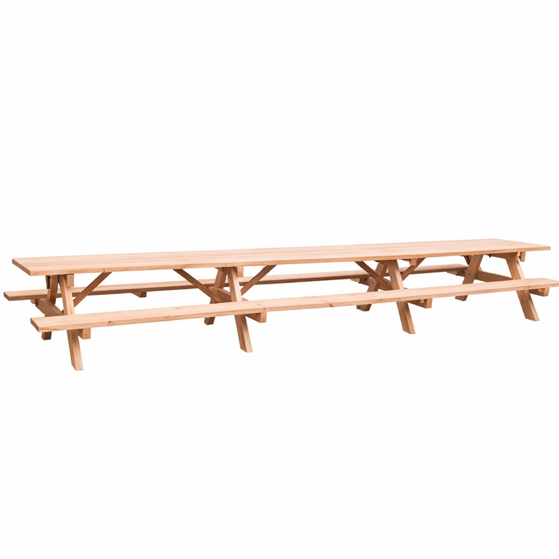 Lang, langer, langst. Deze picknicktafel behoeft geen uitleg. De picknickbank wordt vaak gebruikt bij scholen, verenigingen, bedrijven of andere gelegenheden waar men even gezellig bij elkaar wil zitten.