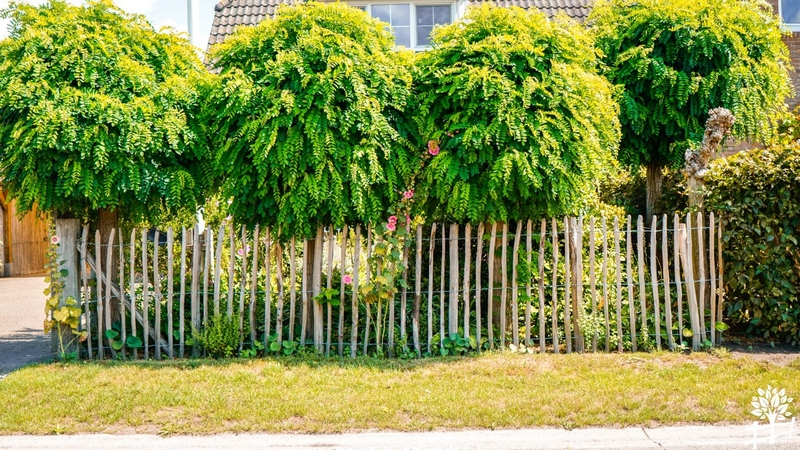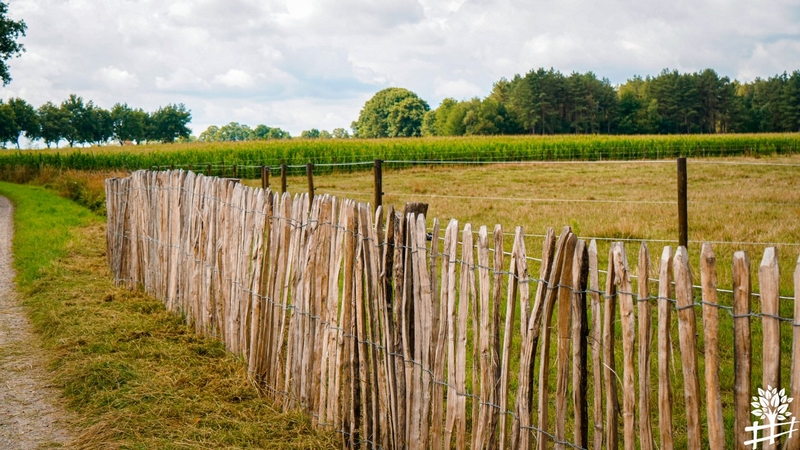 Het plaatsen van deze omheining is verrassend eenvoudig. Start met het plaatsen van palen — liefst robinia voor dezelfde mooie, lange levensduur — op afstanden van 1,5 tot 2 meter. Sla de palen stevig in de grond. Rol daarna het hekwerk uit, zet het tegen de palen en bevestig het met krammen of binddraad.