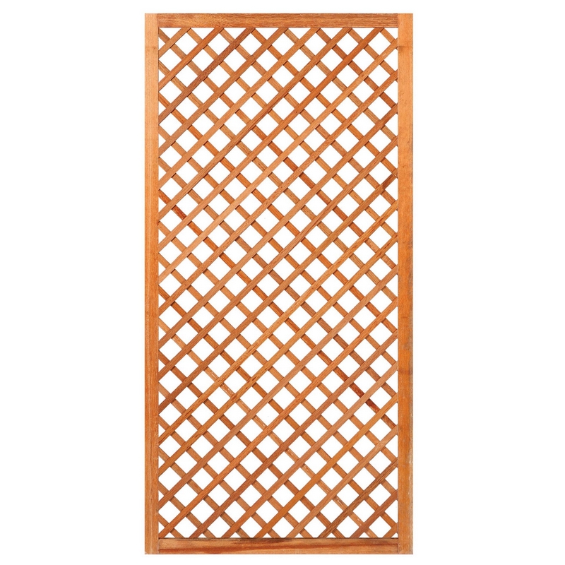 Geef je tuin een mooie upgrade met deze trellis van hoogwaardig Keruing hardhout. Door de strakke omlijsting en de schuine latjes krijgt je tuin direct een moderne en elegante uitstraling. Je kunt het scherm gebruiken als decoratie, maar het is ook de ideale steun voor klimplanten om tegenaan te groeien.
