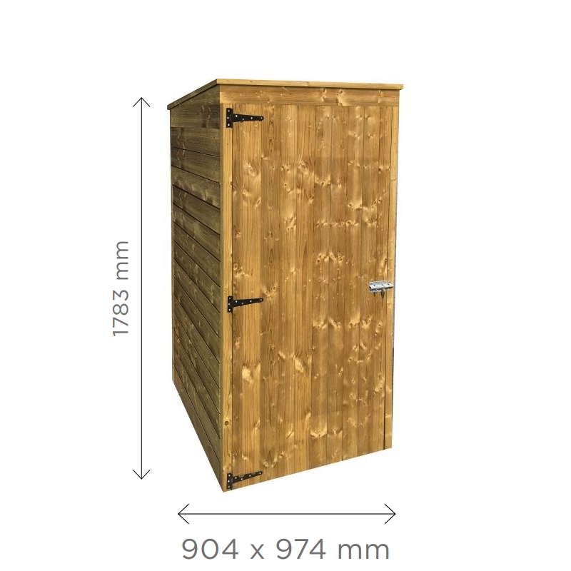 De kast is vervaardigd uit geïmpregneerd Noord-Europees vurenhout, wat zorgt voor een goede bescherming tegen vocht, schimmels en weersinvloeden en daarmee een langere levensduur garandeert.